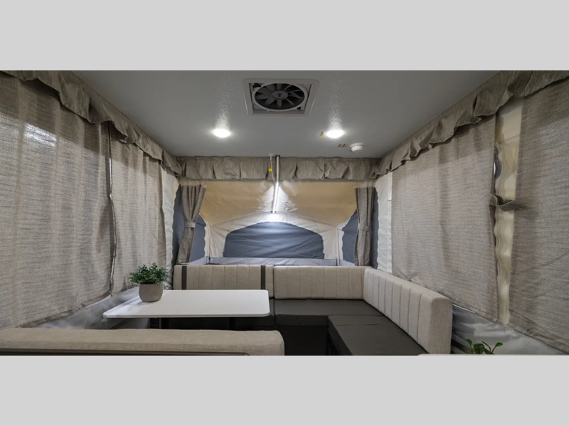 Sleeps 6 Slides 1 Length 19 ft 3 in Ext Width 7 ft Ext Height 6 ft 4 in Hitch Weight 350 lbs Dry Weight 3058 lbs Cargo Capacity 792 lbs Furnace BTU 20000 btu Available Beds Queen and King Tent End Beds Refrigerator Type 12V Cooktop Burners 3 LP Tank Capacity 20 lbs AC BTU 15000 btu Axle Count 1 Number of LP Tanks 2 Shower Type Wet/Bath Shower Electrical Service 30 amp Open Length 25 ft 9 in Similar Floorplans