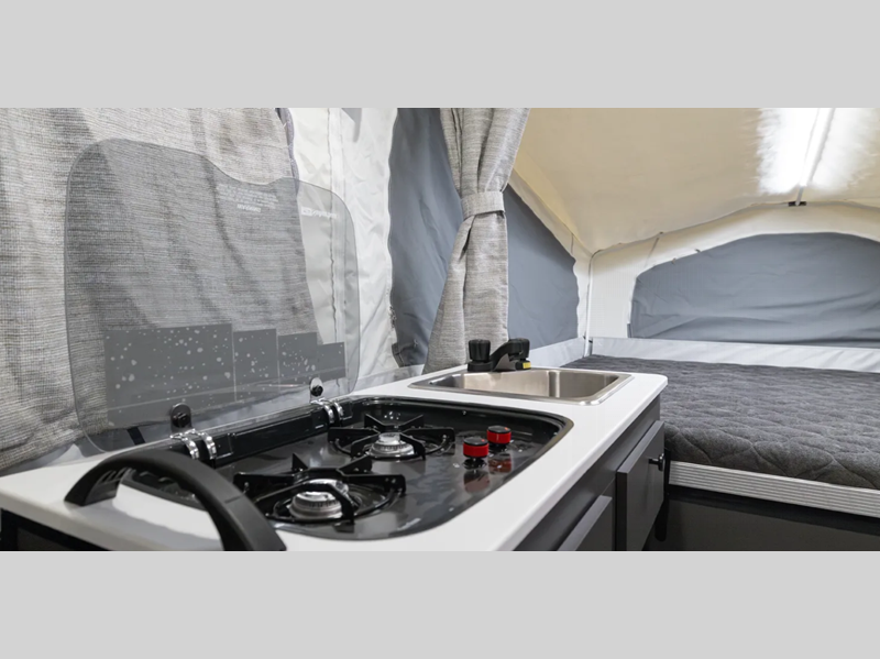 Sleeps 6 Slides 1 Length 16 ft 10 in Ext Width 7 ft Ext Height 5 ft Hitch Weight 260 lbs Dry Weight 2523 lbs Cargo Capacity 737 lbs Furnace BTU 20000 btu Available Beds Queen and King Tent End Beds Refrigerator Type 12V Cooktop Burners 3 LP Tank Capacity 20 lbs AC BTU 15000 btu Axle Count 1 Number of LP Tanks 2 Shower Type Wet/Bath Shower Electrical Service 30 amp Open Length 23 ft 11 in -