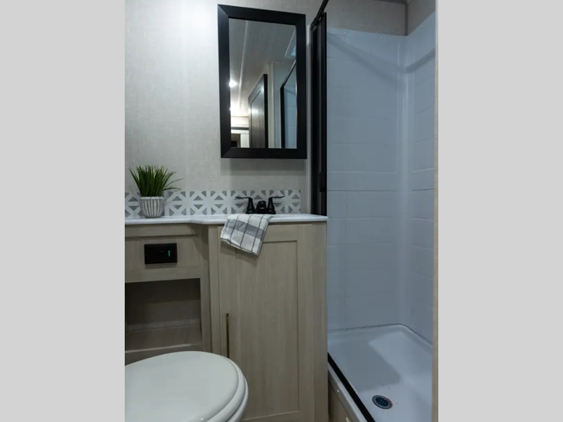 Sleeps 5 Slides 1 Length 30 ft 9 in Ext Width 8 ft Ext Height 11 ft 3 in Hitch Weight 715 lbs GVWR 7715 lbs Dry Weight 6158 lbs Cargo Capacity 1557 lbs Fresh Water Capacity 40 gals Grey Water Capacity 60 gals Black Water Capacity 30 gals Available Beds Queen Refrigerator Type 12V Black Glass Refrigerator Size 10 cu ft Cooktop Burners 3 Number of Awnings 1 Water Heater Type Tankless AC BTU 15000 btu TV Info LR HD TV Awning Info 21' Electric w/LED Light Strip Axle Count 2 Shower Type Standard Electrical Service 30 amp Solar Wattage 200 watts Similar Floorplans