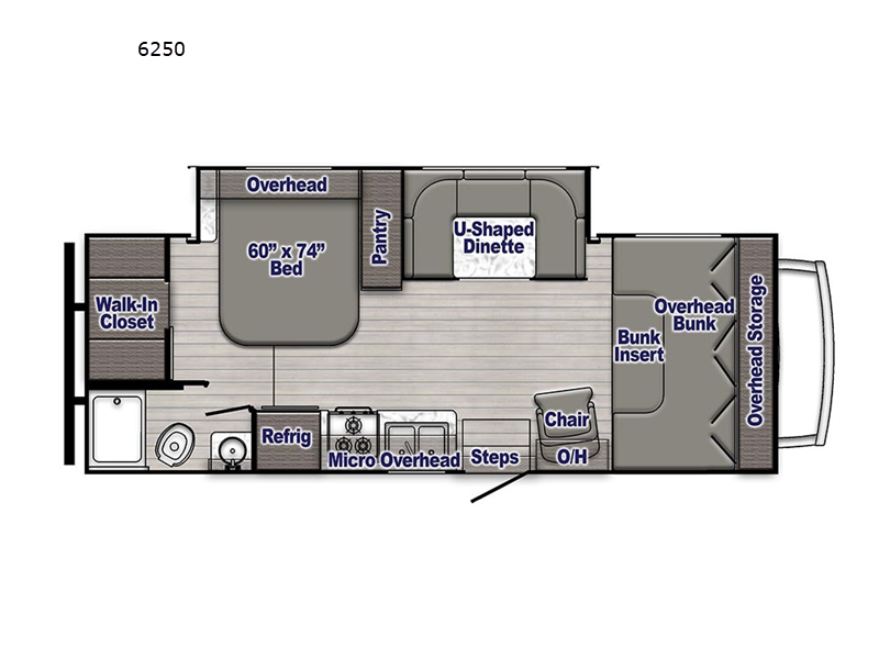 Sleeps 6 Slides 1 Length 26 ft 9 in Ext Width 8 ft 4 in Ext Height 11 ft 3 in Int Height 6 ft 11 in GVWR 12500 lbs Fresh Water Capacity 34 gals Grey Water Capacity 38 gals Black Water Capacity 38 gals Furnace BTU 25000 btu Generator 4.0 kW Enclosed Fuel Type Gasoline Engine 7.3L V8 Chassis Ford E350 Horsepower 350 hp Fuel Capacity 55 gals Number Of Bunks 1 Available Beds RV Queen Torque 425 ft-lb Refrigerator Type Double Door 12V Refrigerator/Freezer Refrigerator Size 10.2 cu ft Cooktop Burners 3 Number of Awnings 1 LP Tank Capacity 42 lbs Water Heater Type Tankless Gas AC BTU 13500 btu Awning Info Electric w/LED Lights Shower Type Standard Electrical Service 30 amp Similar Motor Home Class C Floorplans