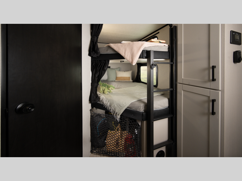 Sleeps 7 Slides 1 Length 29 ft 8 in Ext Width 8 ft Ext Height 10 ft 8 in Int Height 6 ft 6 in Interior Color Dune Gray Hitch Weight 635 lbs GVWR 7600 lbs Dry Weight 6015 lbs Cargo Capacity 1585 lbs Fresh Water Capacity 55 gals Grey Water Capacity 76 gals Black Water Capacity 38 gals Tire Size ST205/75R14D Furnace BTU 35000 btu Number Of Bunks 2 Available Beds Queen Refrigerator Type 12V Refrigerator Size 11 cu ft Cooktop Burners 3 Shower Size 30" x 36" Number of Awnings 1 LP Tank Capacity 20 lbs. Water Heater Type On Demand Tankless AC BTU 13500 btu TV Info LED Smart TV Awning Info 21' Max-Length Power w/LED Light Axle Count 2 Number of LP Tanks 2 Shower Type Standard Electrical Service 30 amp Solar Wattage 200 watts Similar Floorplans